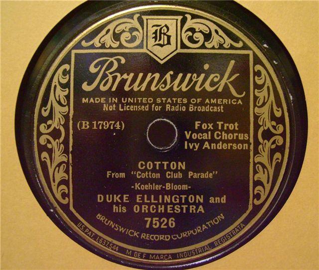 | Cotton Brunswick 7526 Brunswick Record Corporation Matrix B17974 Duke Ellington and His Orchestra voc. Ivy Anderson