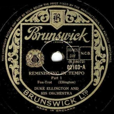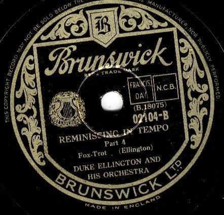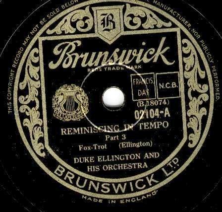 | Reminiscing in Tempo - Part 1 Brunswick 7546 Brunswick Record Corporation Matrix B18072-1 Duke Ellington and His Orchestra New Desor DE3505a Recorded Sept 12, 1935 ARC session, NYC Listen on http://www.jazz-on-line.com, (courtesy of Michel Essevaz-Roulet) |