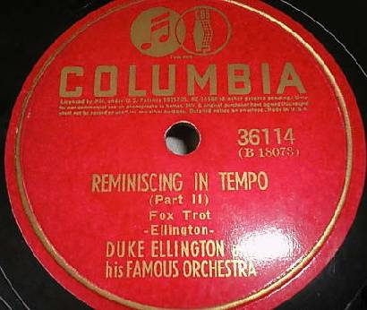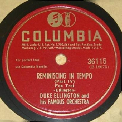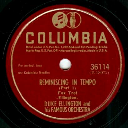 | Reminiscing in Tempo (Part I) Columbia 36114 Matrix B18072-1 Duke Ellington and His Orchestra New Desor DE3505a Recorded Sept 12, 1935 ARC session, NYC Listen on http://www.jazz-on-line.com, (courtesy of Michel Essevaz-Roulet) added 2012-04-05 |