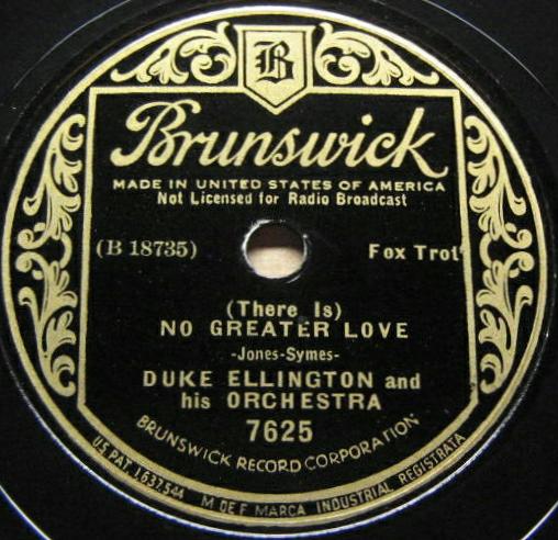 | (There is) No Greater Love Brunswick 7625 Brunswick Record Corporation Matrix B18375-1 Duke Ellington and His Orchestra New Desor DE3604b Duke Ellington and His Orchestra Recorded Feb 27 1936 ARC session, NYC added 2007-12-02 |