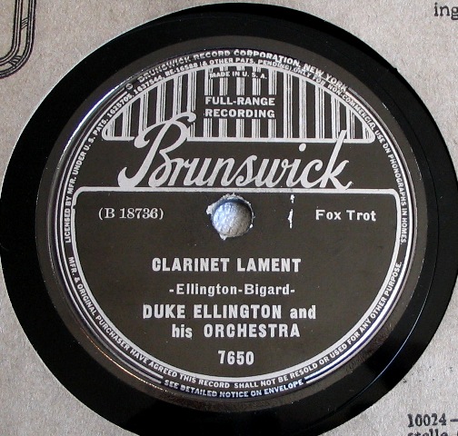 | Clarinet Lament Brunswick 7650 Brunswick Record Corporation Matrix B18736-1 New Desor DE3604c Duke Ellington and His Orchestra Listen on http://www.jazz-on-line.com, (courtesy of Michel Essevaz-Roulet) added 2010-03-07 |