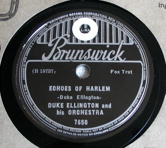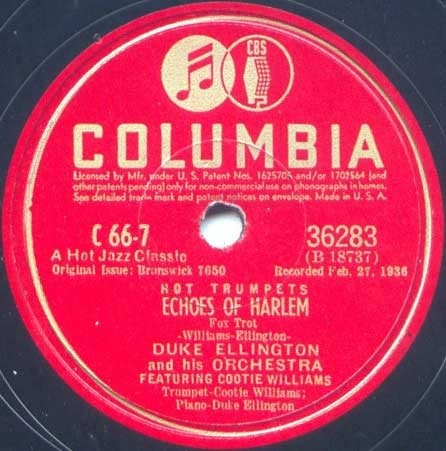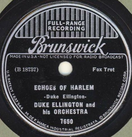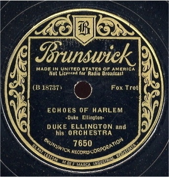 | Echoes of Harlem alternate titles"Cootie's Concerto" and "Sweetest Gal Goin'" Brunswick 7650 Brunswick Record Corporation Matrix B18737-1 Duke Ellington and His Orchestra New Desor DE3604d Recorded Feb 27 1936, ARC session, NYC Listen on http://www.jazz-on-line.com, (courtesy of Michel Essevaz-Roulet) Image courtesy of The Dooji Collection upgraded 2010-07-31 |