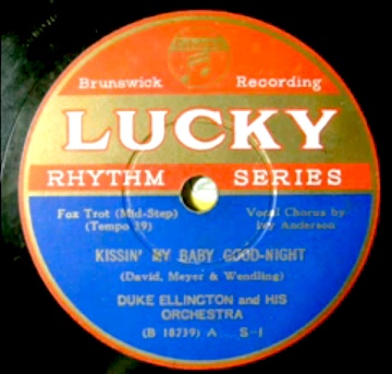 Lucky Rhythm Series (Japan) Lucky Records Matrix B18739-2 Duke Ellington and His Orchestra Ivie Anderson New Desor DE3605b Recorded February 28, 1936 ARC session, New York City Listen on YouTube.com with pictures of the musicians. Image courtesy of The Dooji Collection added 20090607 |