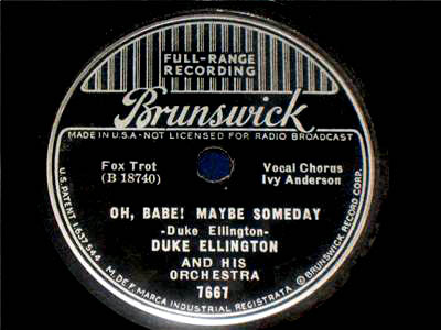 Brunswick 7627 Brunswick Record Corporation Matrix B18738-1 Duke Ellington and His Orchestra Vocal Ivy Anderson New Desor DE3605a Recorded February 28, 1936 ARC recording session, New York City Listen on http://www.jazz-on-line.com, (courtesy of Michel Essevaz-Roulet) Image courtesy of The Dooji Collection |