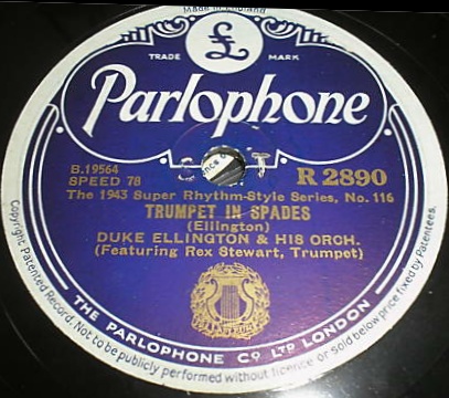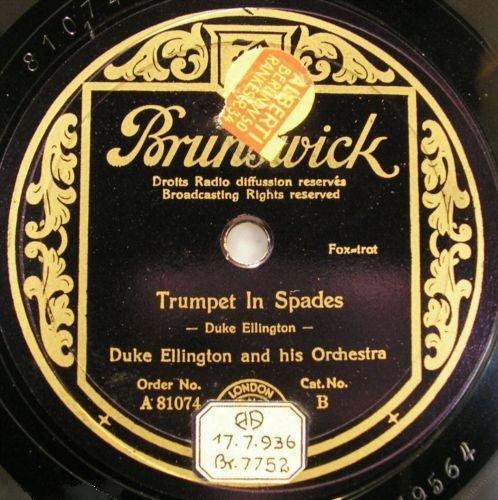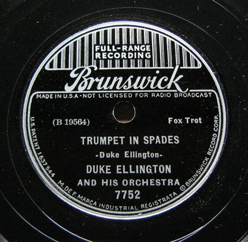 | Trumpet in Spades Brunswick 7752 Brunswick Record Corp. Matrix B 19564-1 Duke Ellington and His Orchestra New Desor DE3608c Recorded July 17, 1936 at ARC session, New York City Listen on http://www.jazz-on-line.com, (courtesy of Michel Essevaz-Roulet) Image replaced 2009-05-05 |