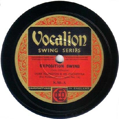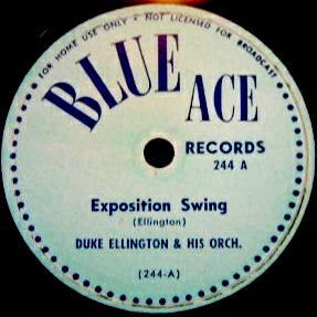 | Exposition Swing Blue Ace 244 A Matrix B19627-1 (vinylite, transcription system) Duke Ellington and His Orchestra New Desor DE3609b Recorded July 29, 1936 ARC session, New York. Listen on http://www.jazz-on-line.com, (courtesy of Michel Essevaz-Roulet) |