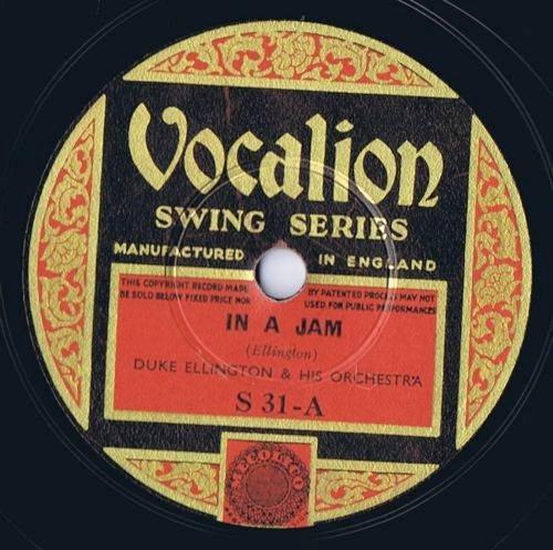| In A Jam Brunswick 7734 Brunswick Record Corp. Matrix B19626-1 Duke Ellington and His Orchestra New Desor DE3609a Recorded July 29, 1936, ARC session, New York City, NY Listen on http://www.jazz-on-line.com, (courtesy of Michel Essevaz-Roulet) |