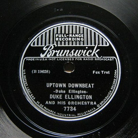 | Uptown Downbeat Brunswick 7734 Brunswick Record Corp. Matrix B19628-1 (vinylite, transcription system) Duke Ellington and His Orchestra New Desor DE3609d Recorded July 29, 1936, ARC recording session, New York City Image replaced 2009-05-05 |