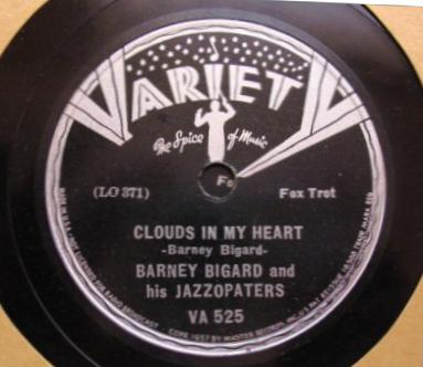 | Clouds In My Heart Variety VA 525 Matrix L0371-2 Barney Bigard and his Jazzopaters New Desor DE3611b Recorded December 19, 1936 Master Recording Session, Los Angeles, California Listen on http://www.jazz-on-line.com, (courtesy of Michel Essevaz-Roulet) |